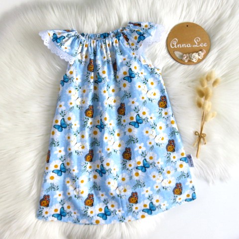 The playful floral and butterfly print adds a cheerful charm, while the lightweight cotton fabric keeps little ones cool and comfortable all day long.