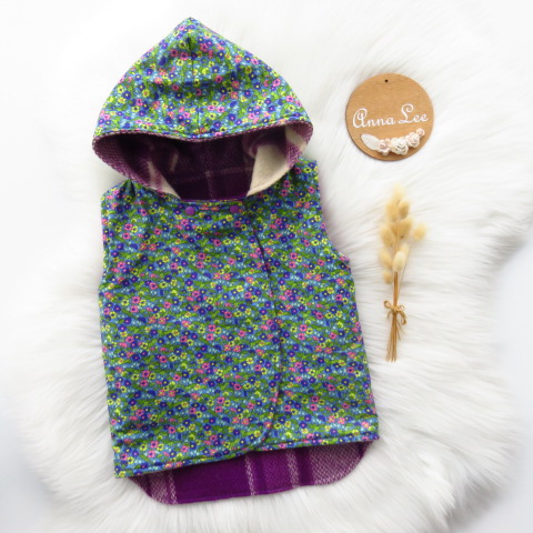 These ready to send vests are made from re-purposed woollen blankets (100% nz wool) and matched up with new 100% cotton fabrics.