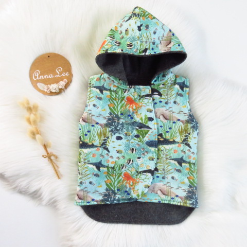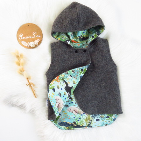 These ready to send vests are made from re-purposed woollen blankets (100% nz wool) and matched up with new 100% cotton fabrics.