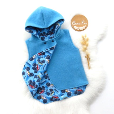 These ready to send vests are made from re-purposed woollen blankets (100% nz wool) and matched up with new 100% cotton fabrics.