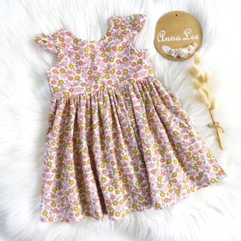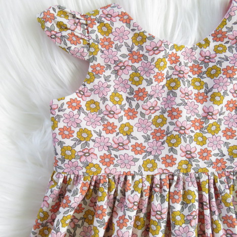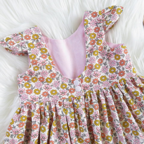 The sz 6-12mths Alexa Dress - Soft Retro is a gorgeous handmade baby summer dress, perfect for special occasions, birthdays, and family photos.