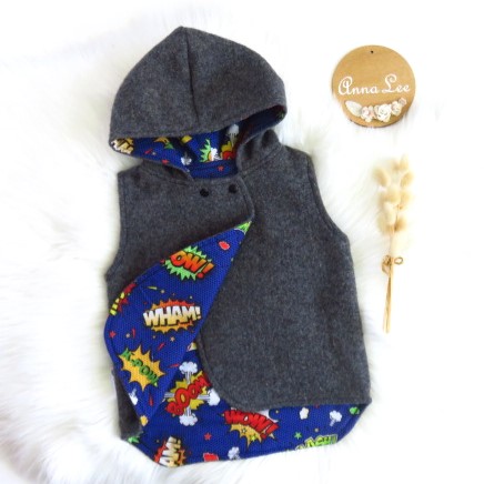 These ready to send vests are made from re-purposed woollen blankets (100% nz wool) and matched up with new 100% cotton fabrics.
