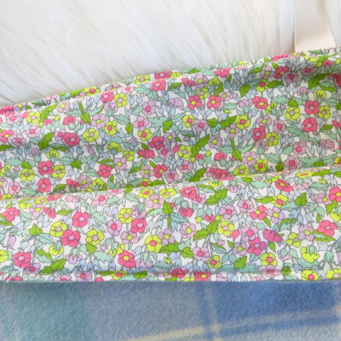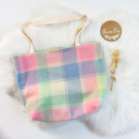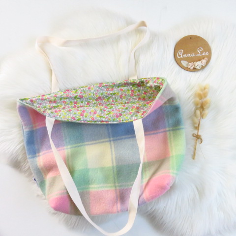This is a generous sized tote bag made with a repurposed wool blanket outer and a 100% cotton liner. The bags are reversible if you prefer to have the cotton side out for a different look.